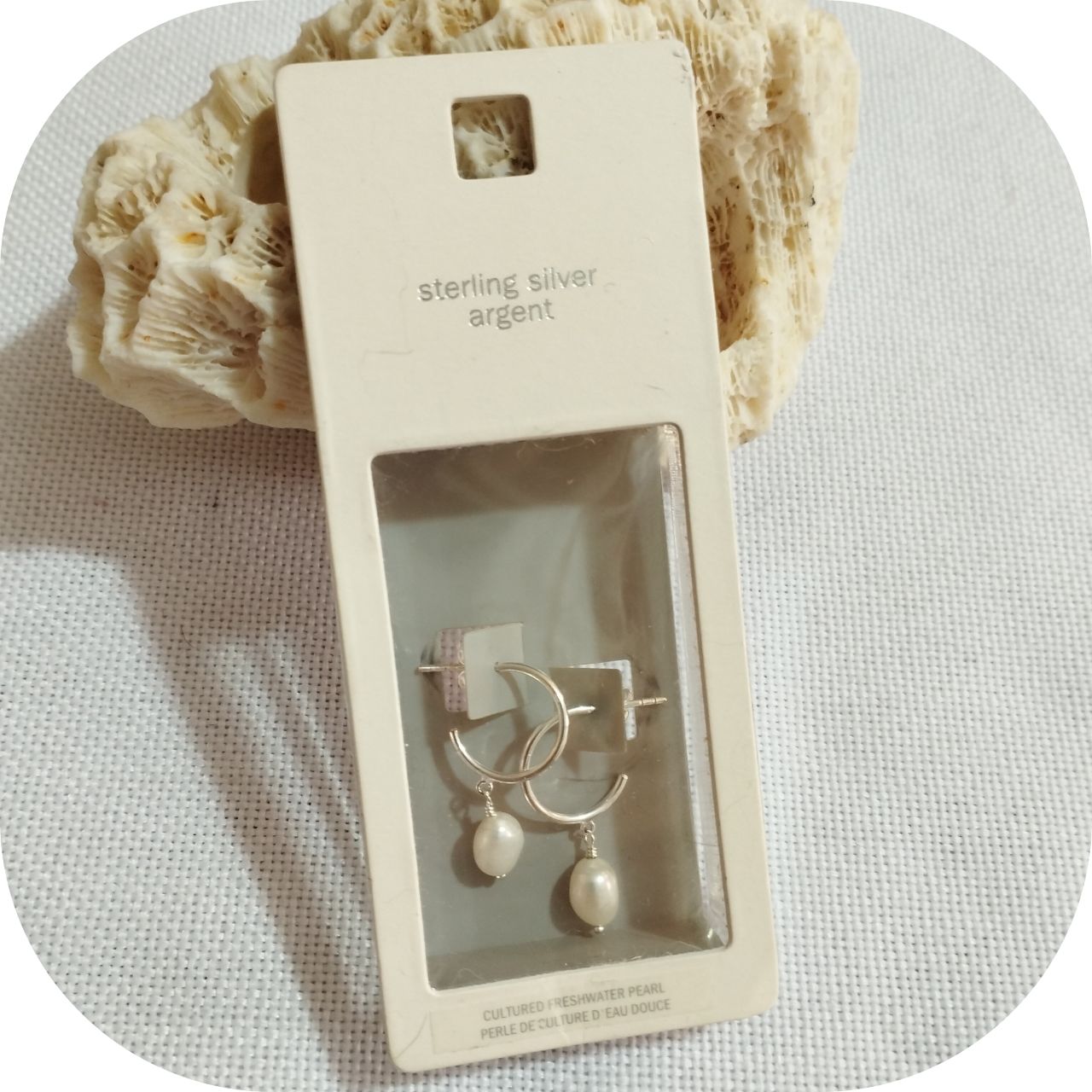 گوشواره نیم حلقه با آویز مروارید جنس نقره ۹۲۵ برند I amناموجود