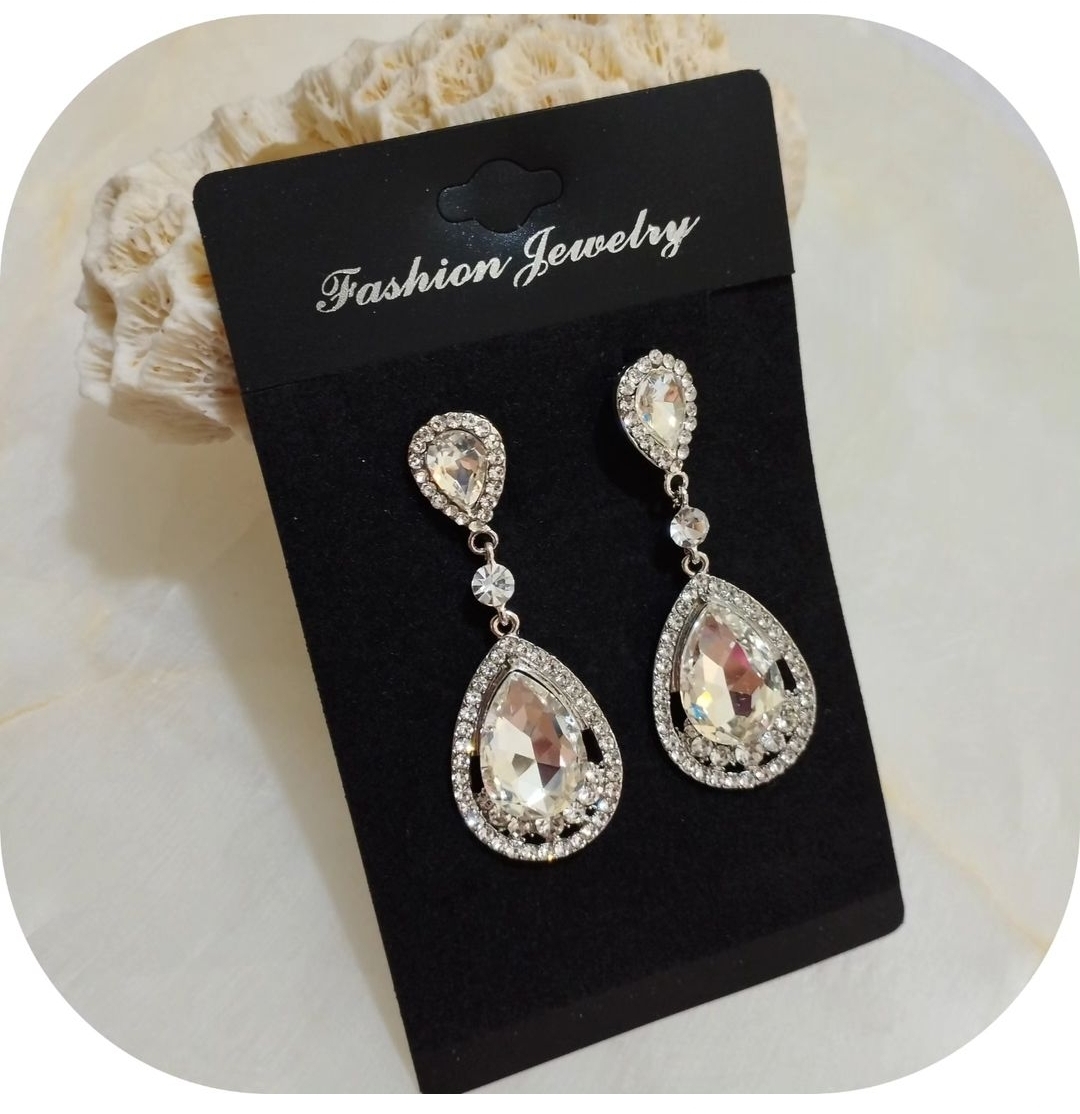 گوشواره زنانه طرح اشکی کریستال رنگی در ۳ رنگ محصول کشور چین