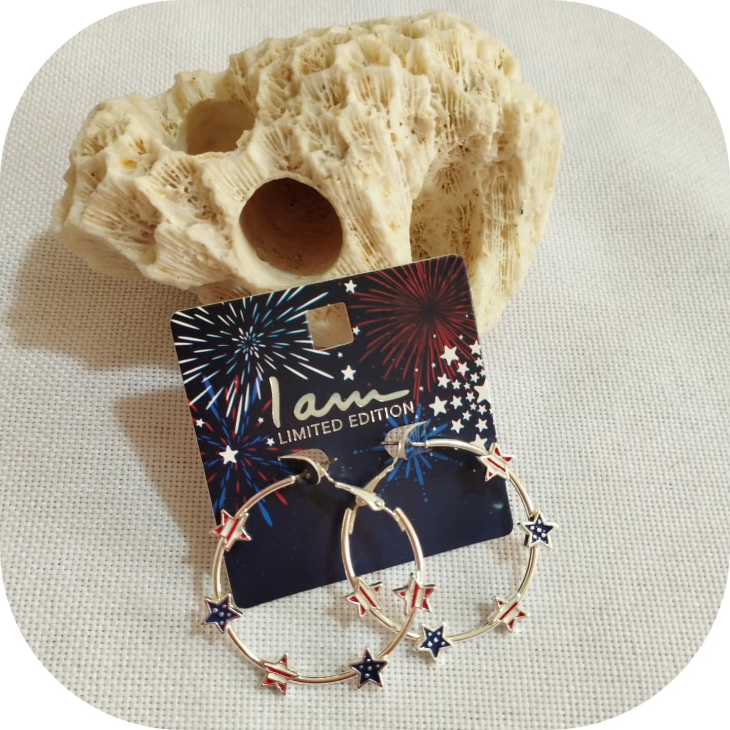 گوشواره آویز و حلقه ای طرح پرچم برند I am ضد حساسیت