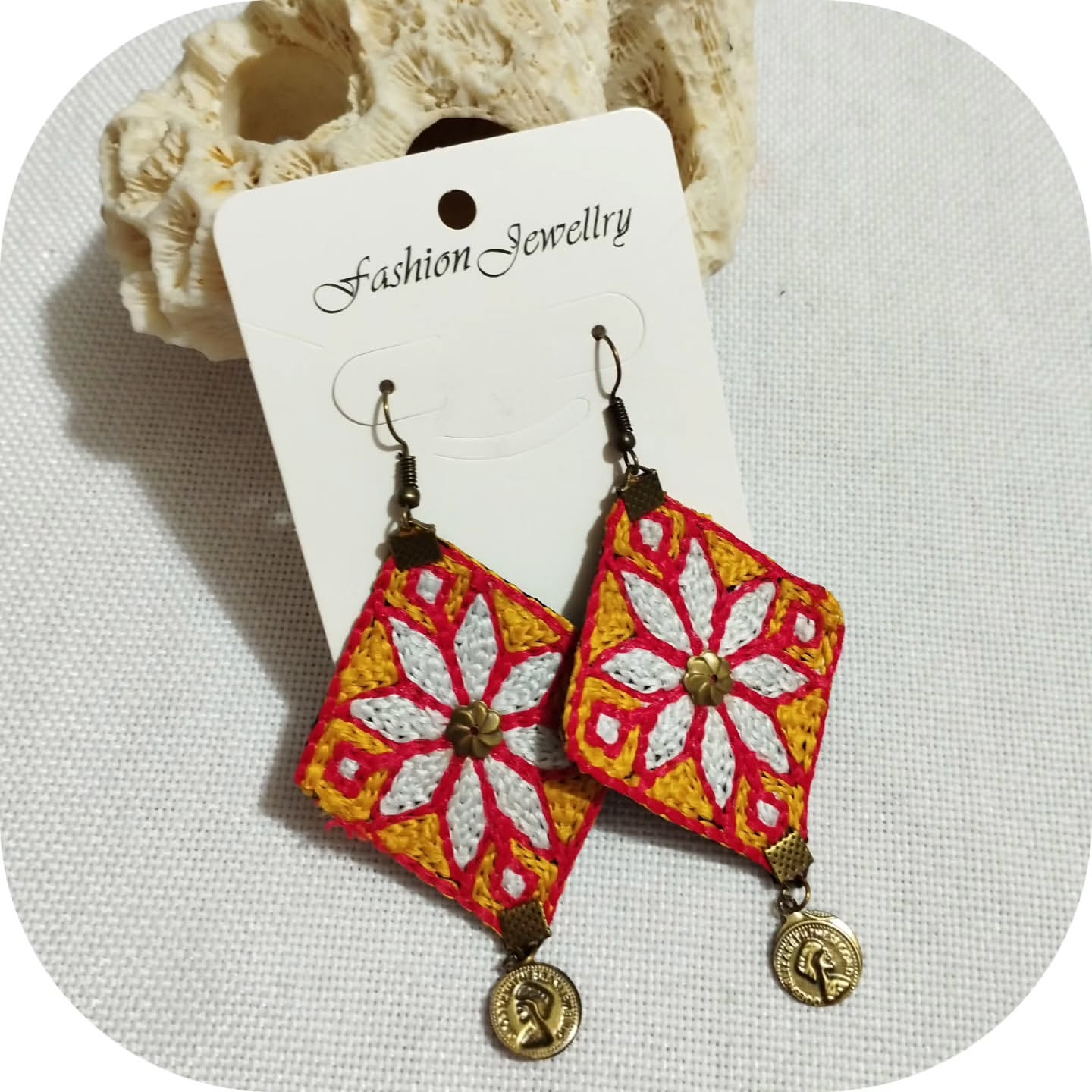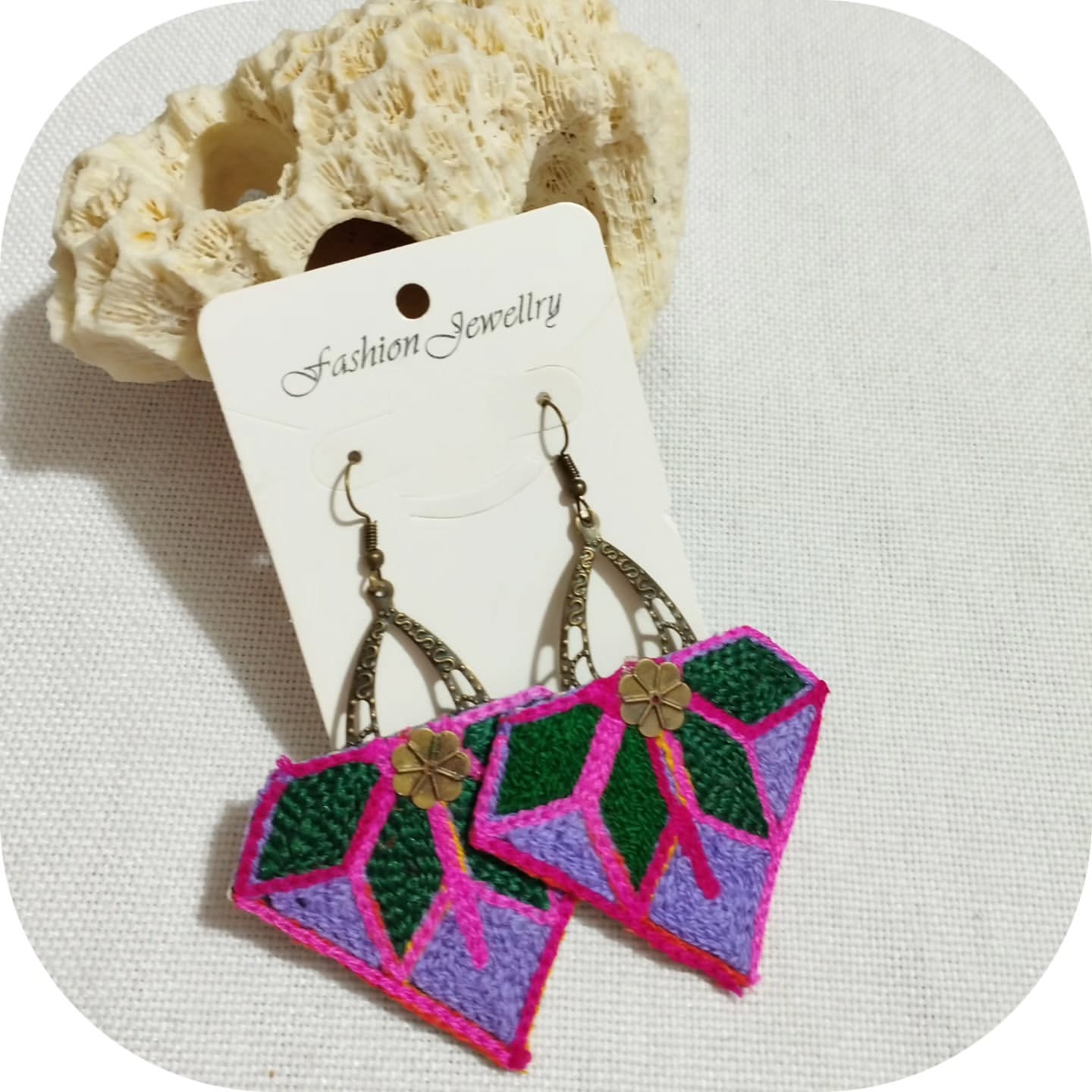 گوشواره آویز طرح سوزن دوری در ۹ طرح ارسال توسط پست #گوشواره_سوزندوزی #بدلیجات_سوزندوزی