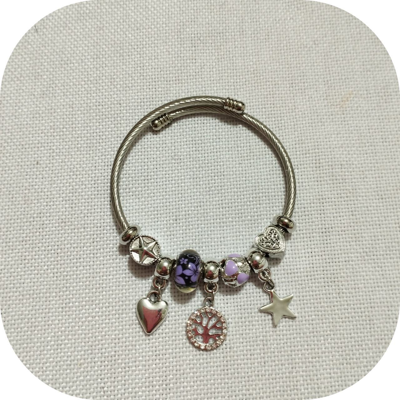 دستبند پاندورا نقره ای با آویزهای مختلف